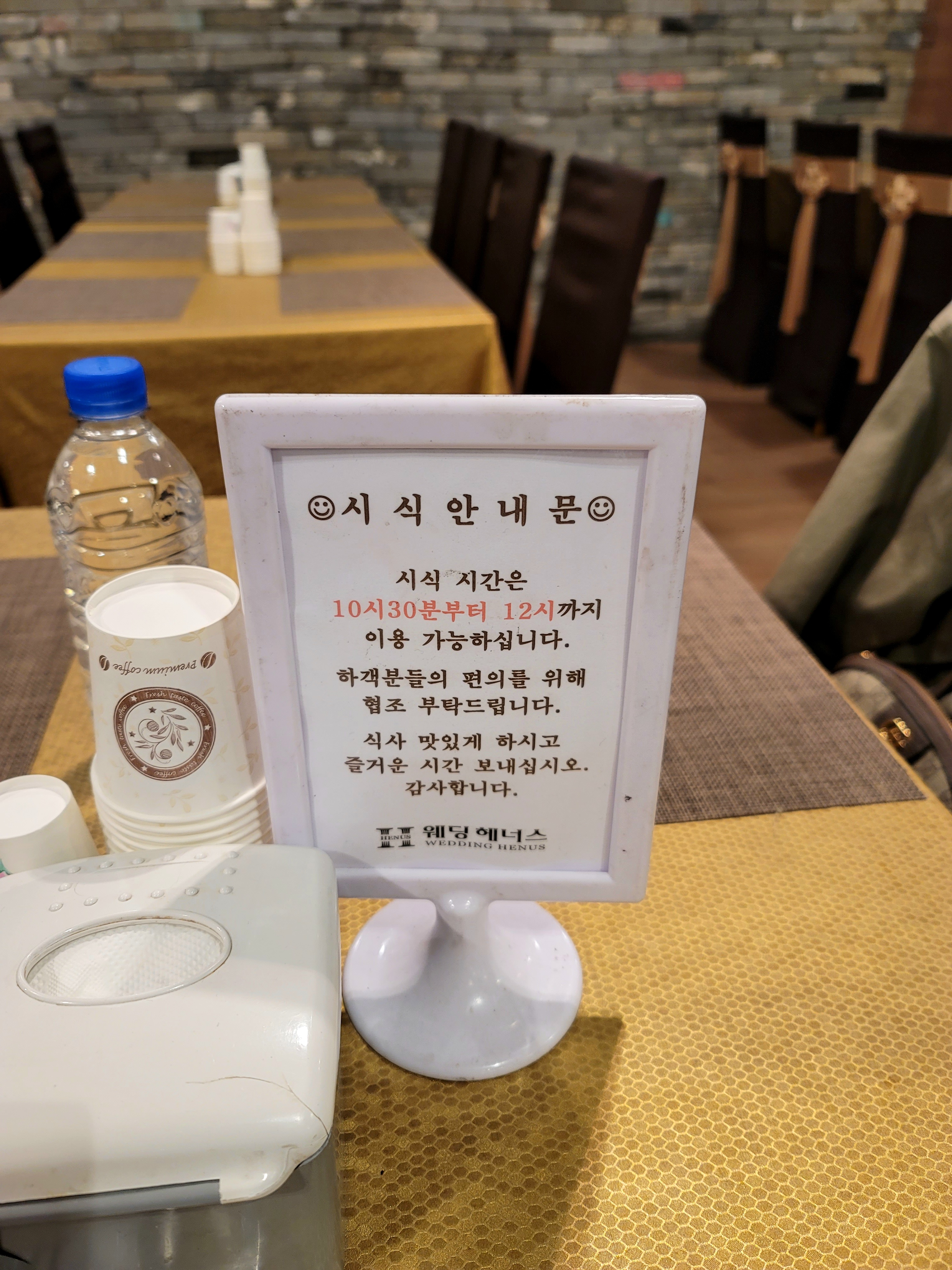웨딩홀을 계약하게 되면 6인 시식권을 준다 (아마도 양가부모님 모시고 시식해보라는 의미인가?)