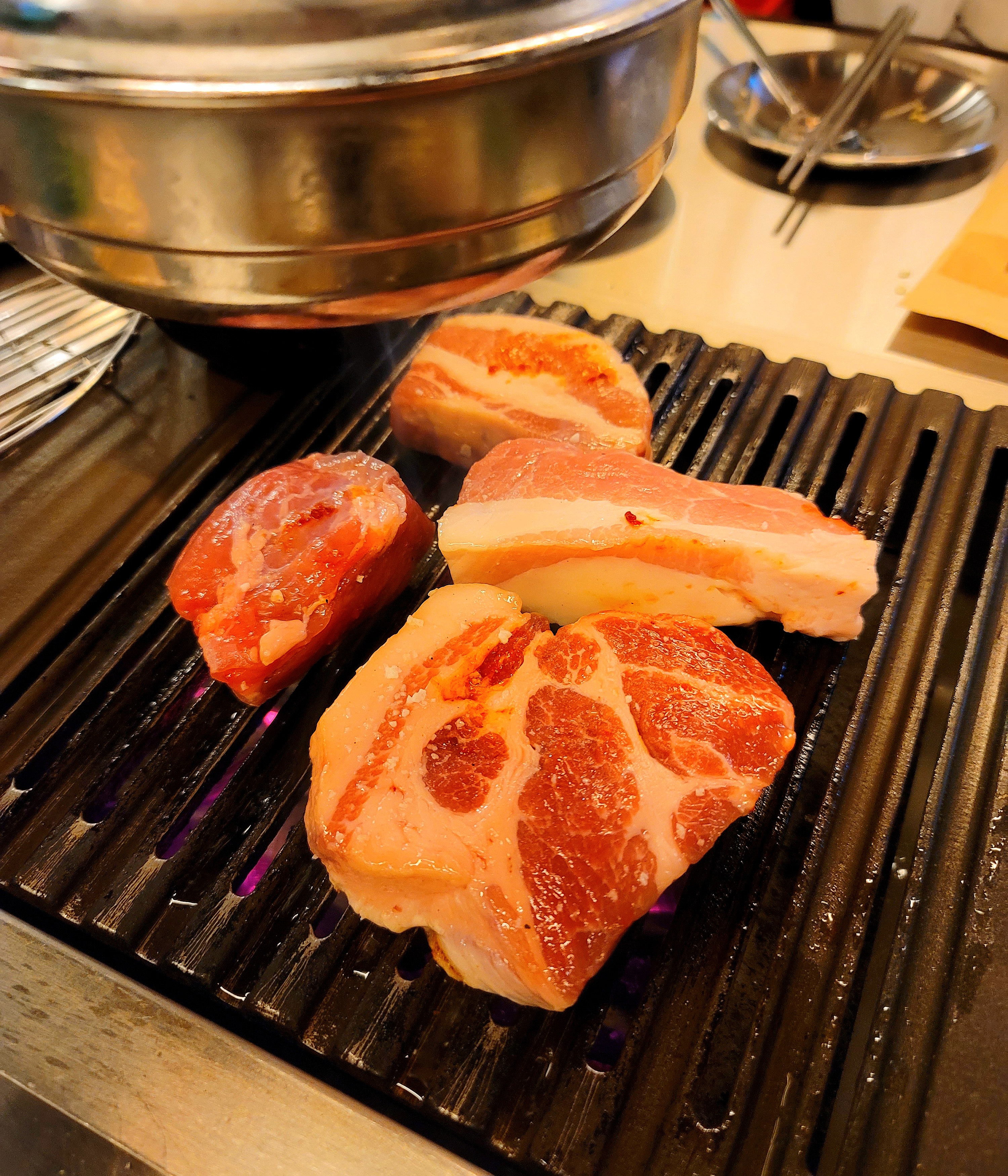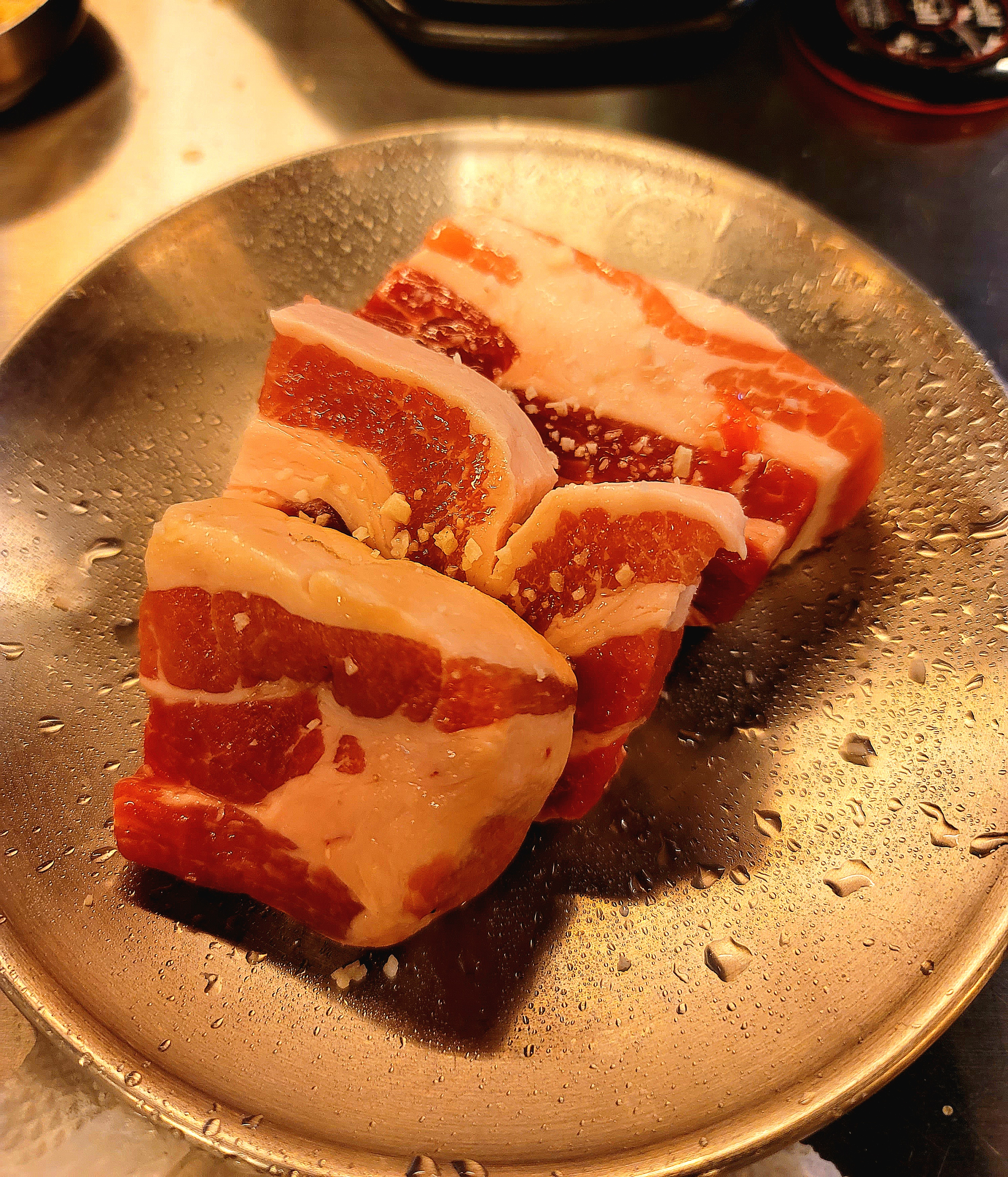 삼겹살 : 바삭하게 구워 육즙 가득!