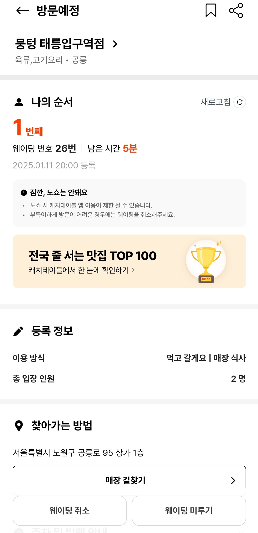 미리 웨이팅 걸어두고 가면 좋을꺼 같아요