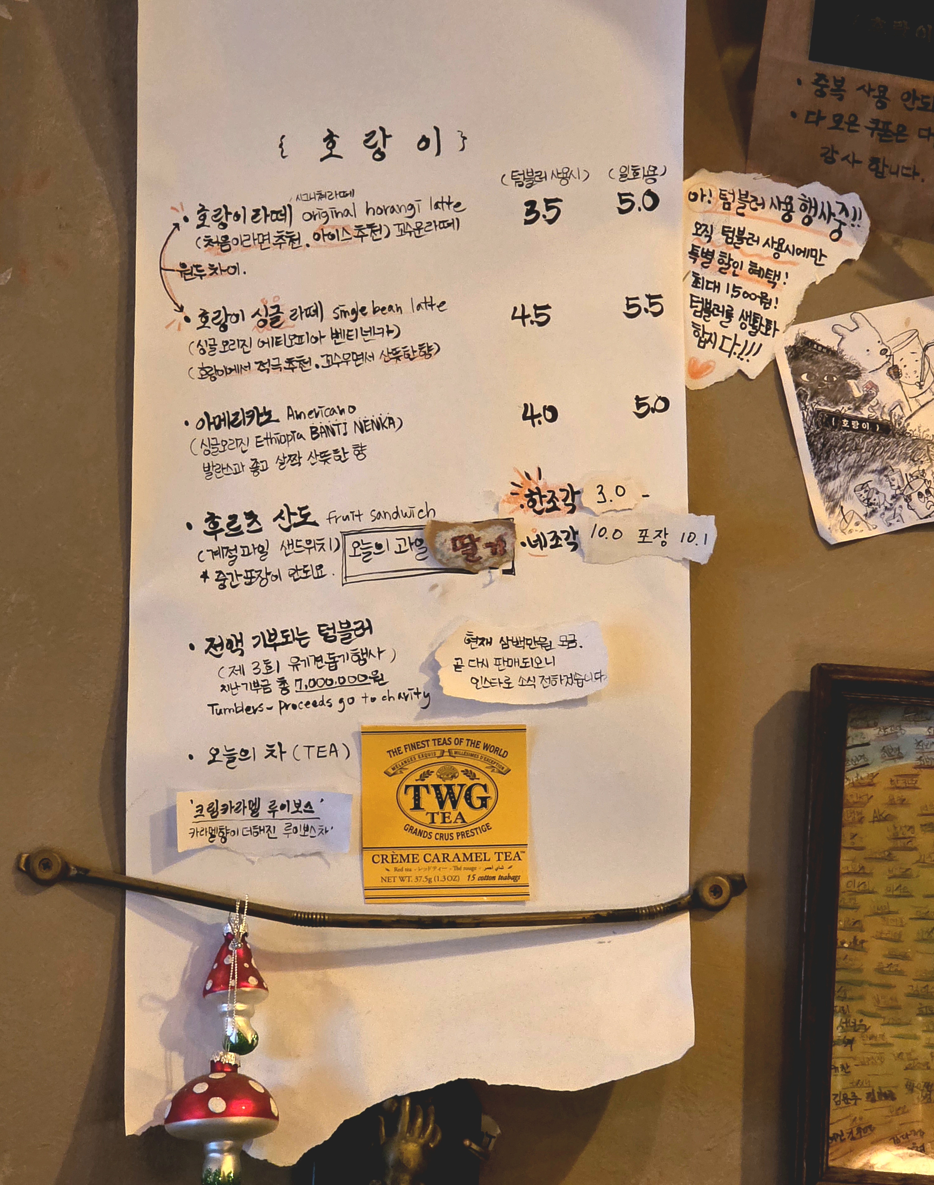 대림상가 호랑이 카페 메뉴 중에서