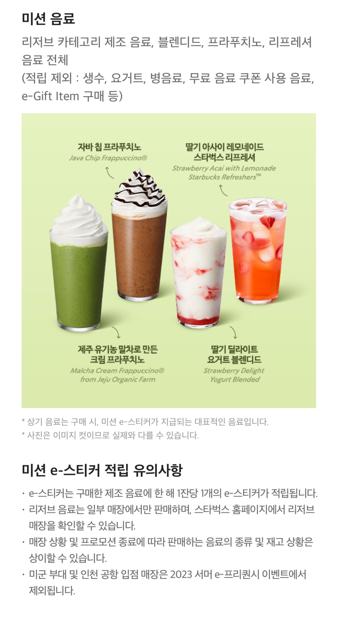(적립 제외 : 생수, 요거트, 병음료, 무료 음료 쿠폰 사용 음료, e-Gift Item 구매 등)