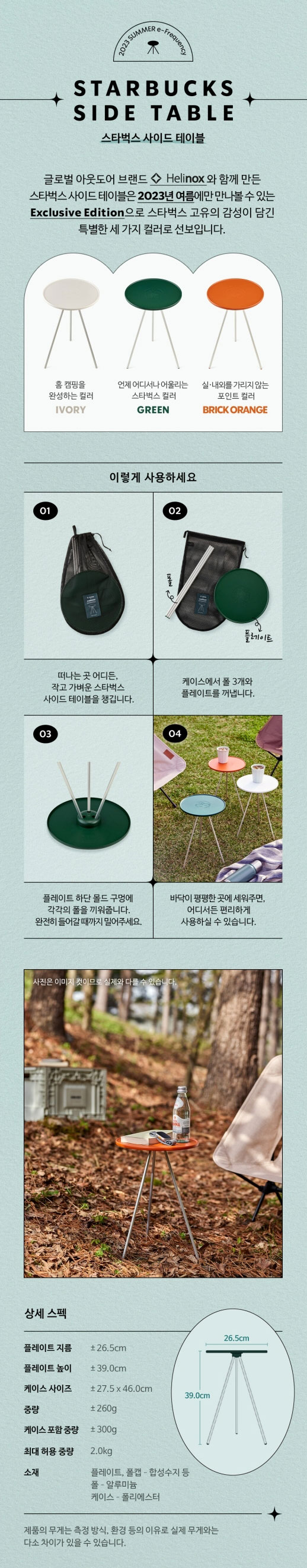 증정품은 헬리녹스 x 스타벅스 사이드 테이블과 스타벅스 팬앤플레이트 입니다