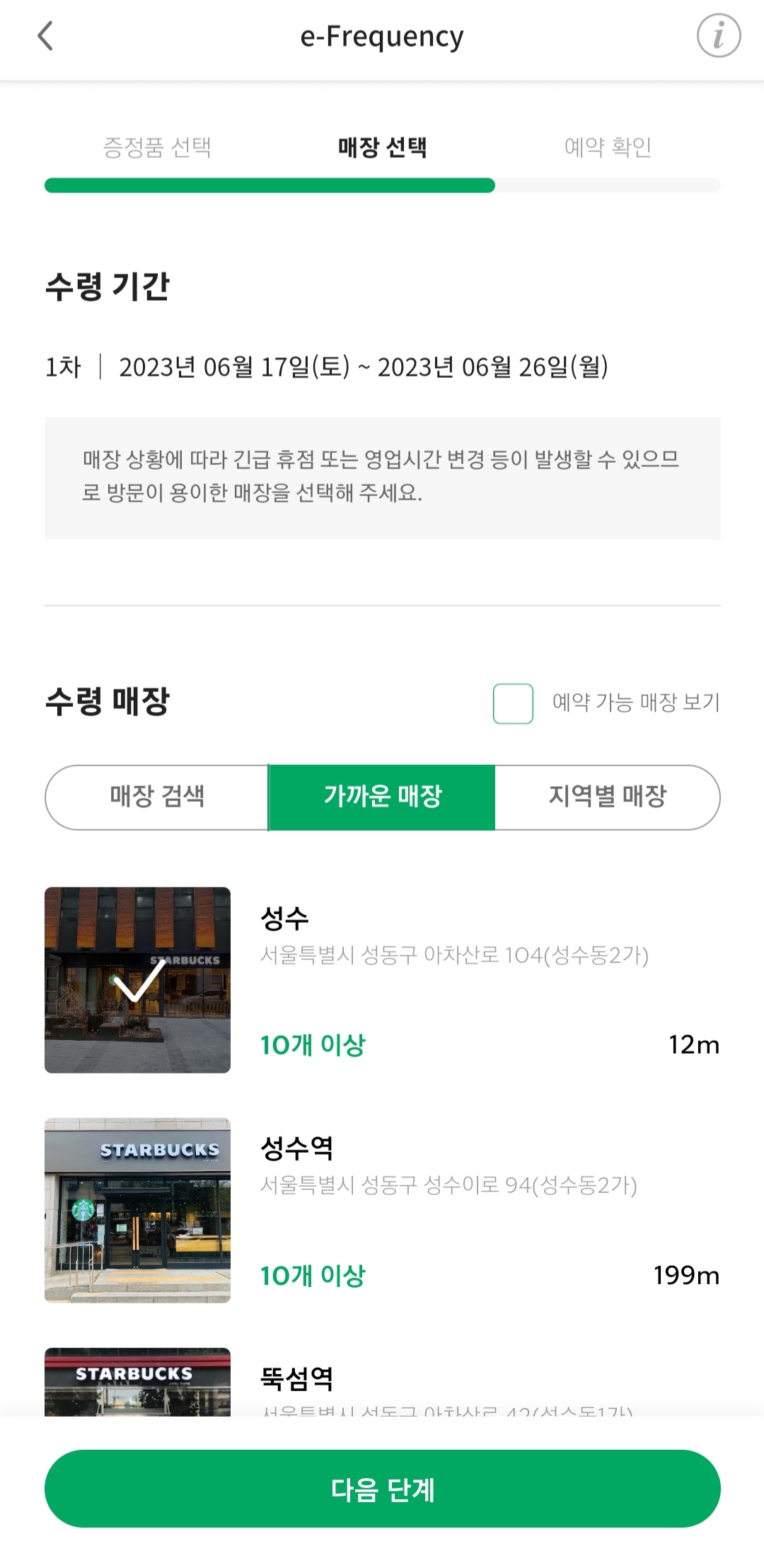 수령 매장도 성수점으로 선택 하였습니다