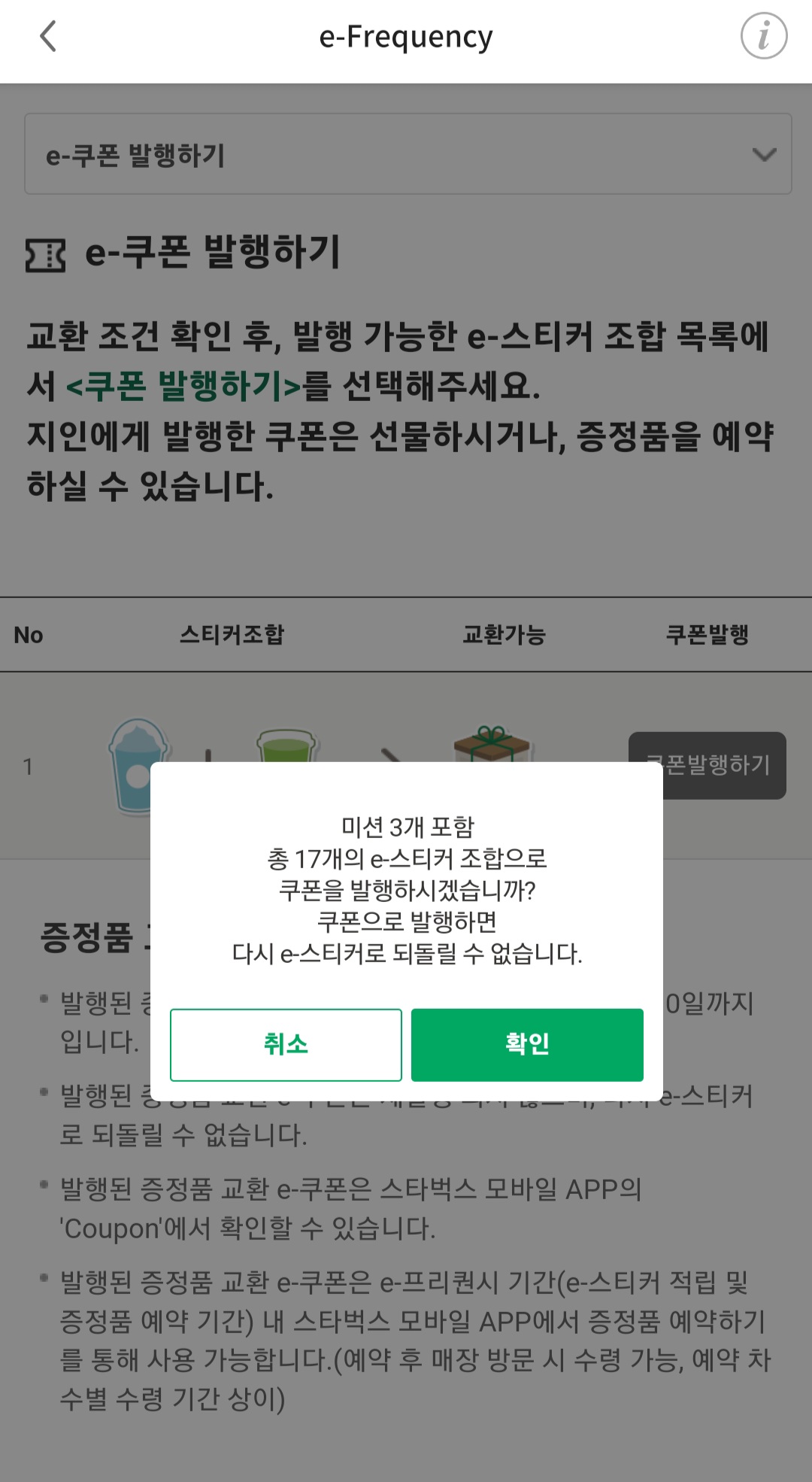 e-스티커를 쿠폰으로 발행하면 다시 e-스티커로 되돌릴 수 없습니다