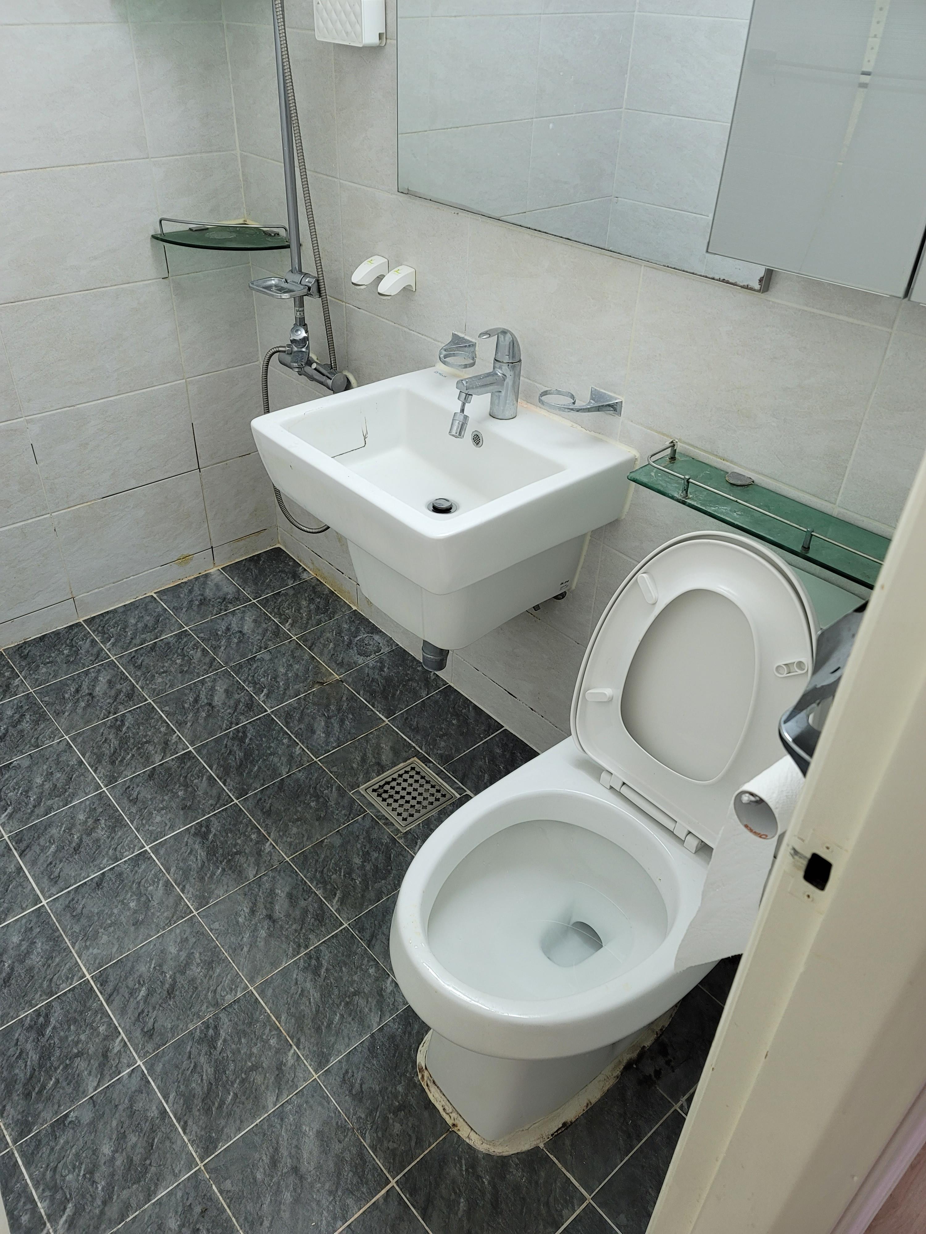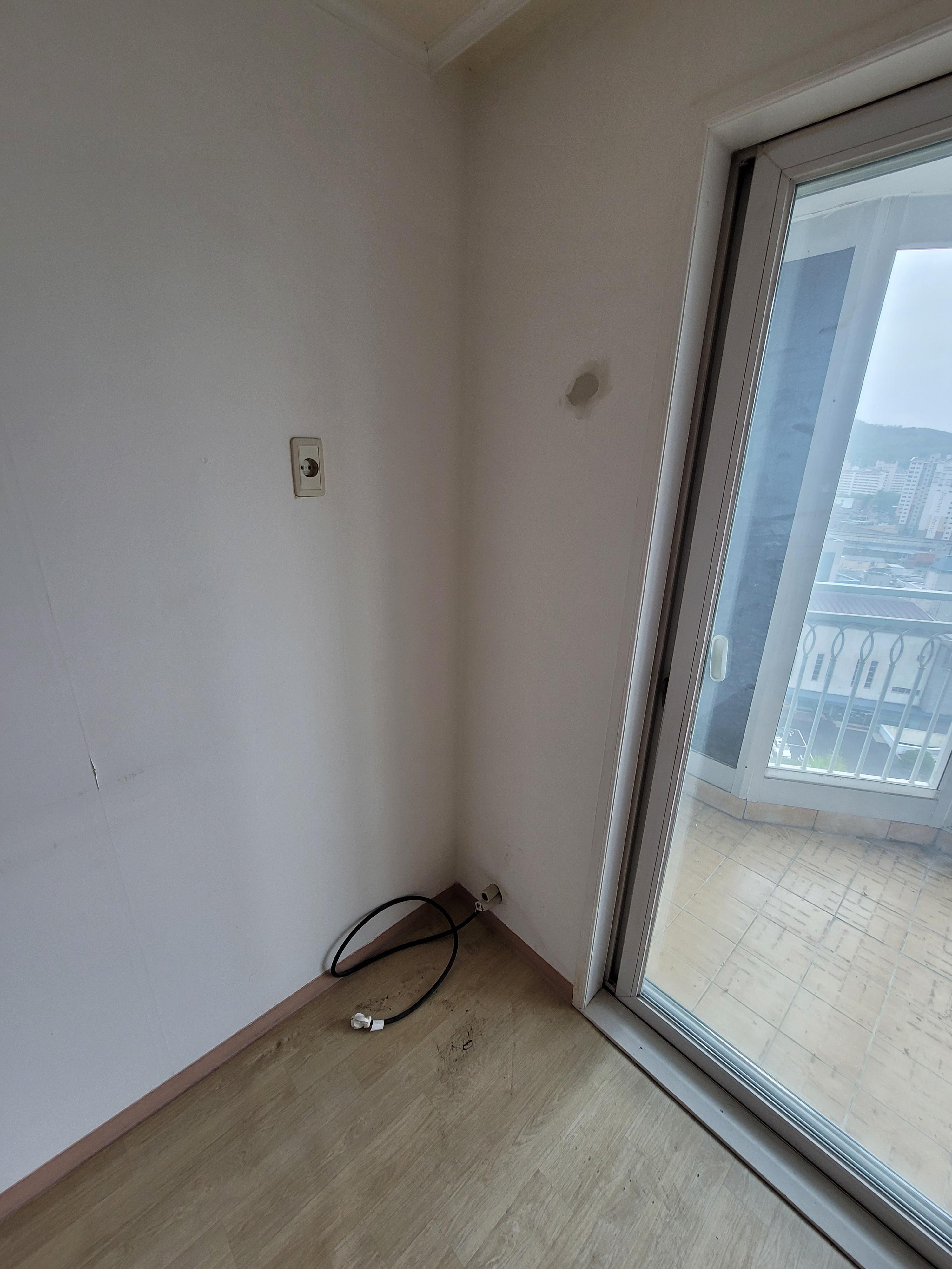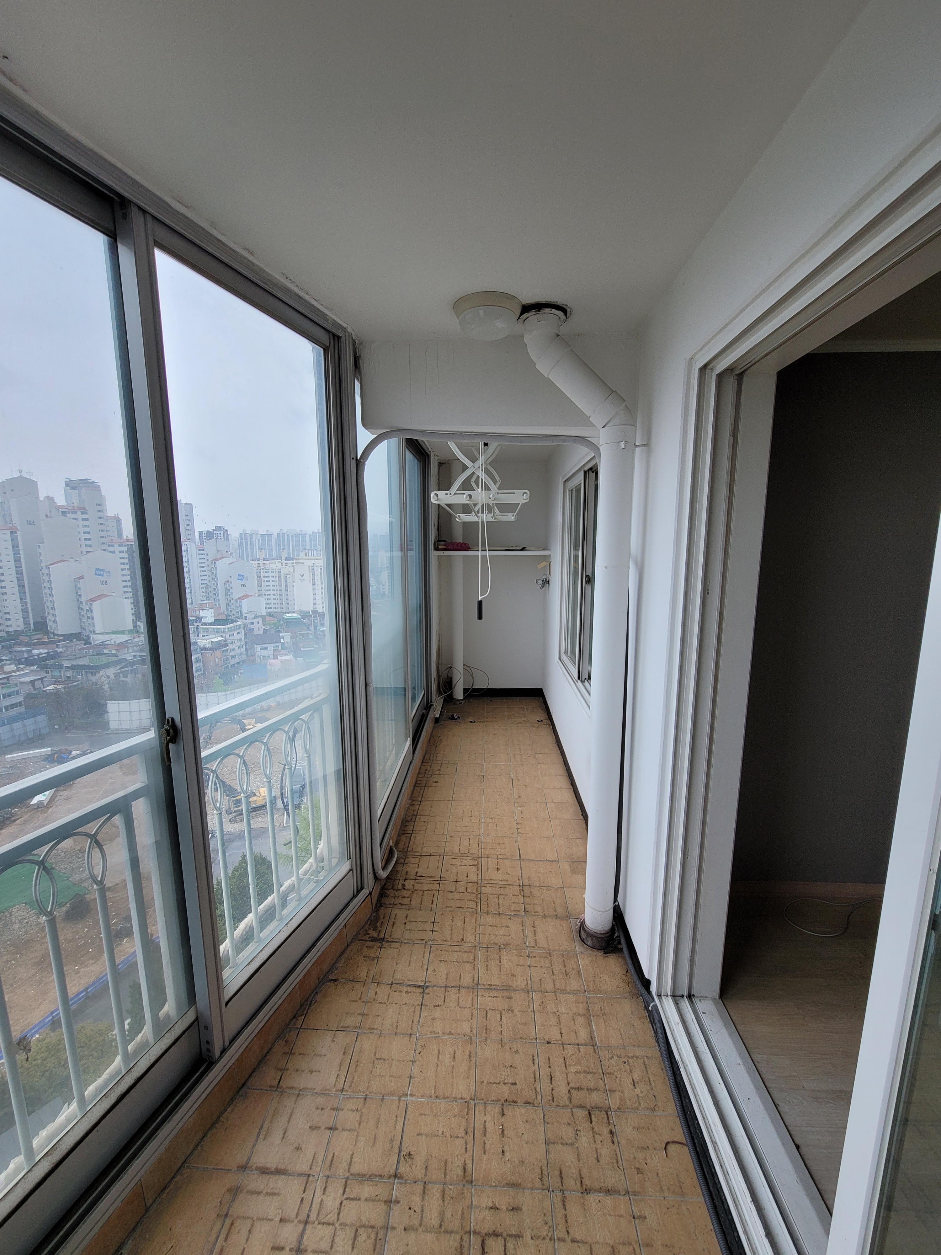 베란다 타일과 벽 샷시모두 오래되고 낡았습니다