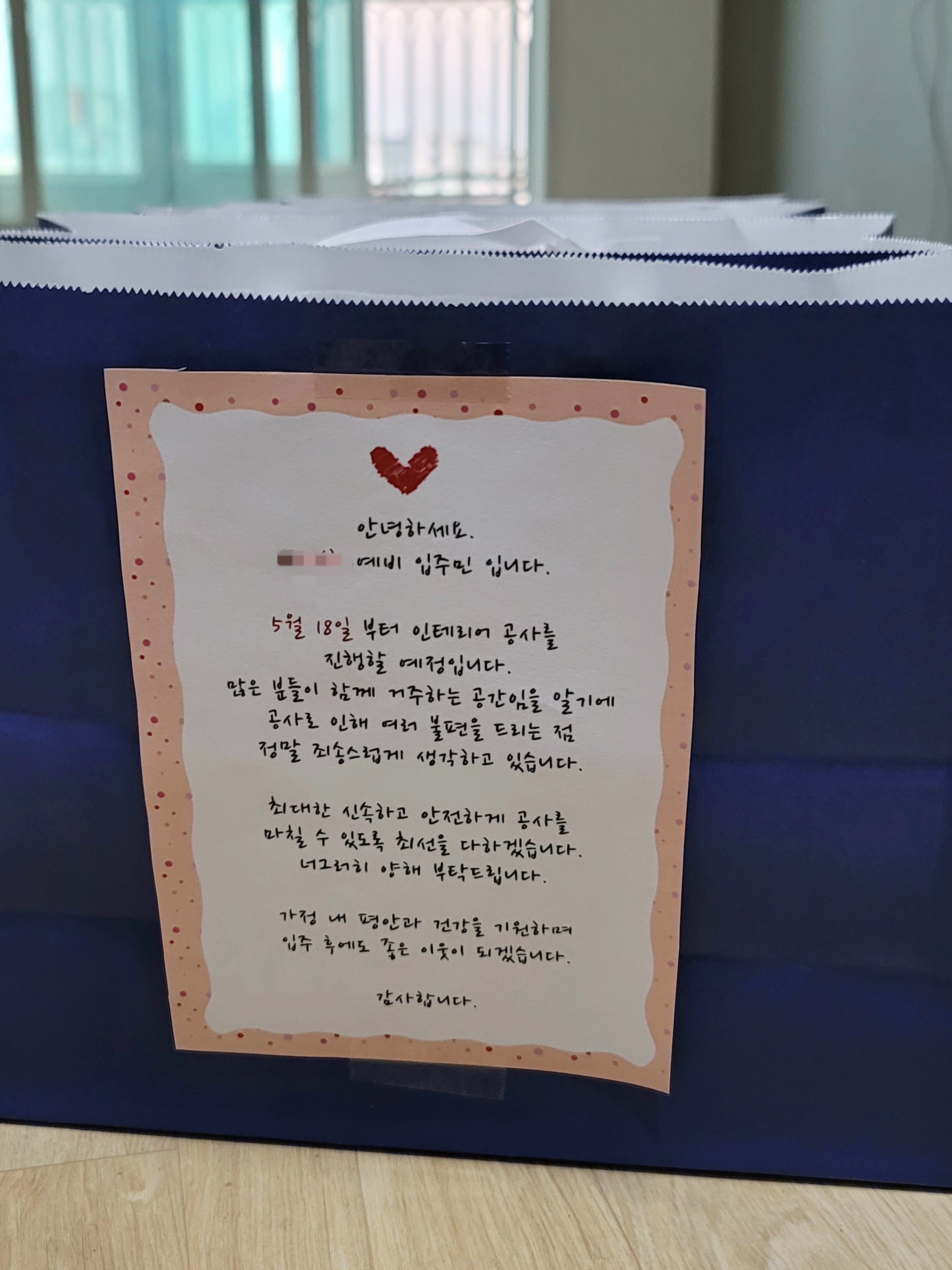 인테리어 양해편지 문구는