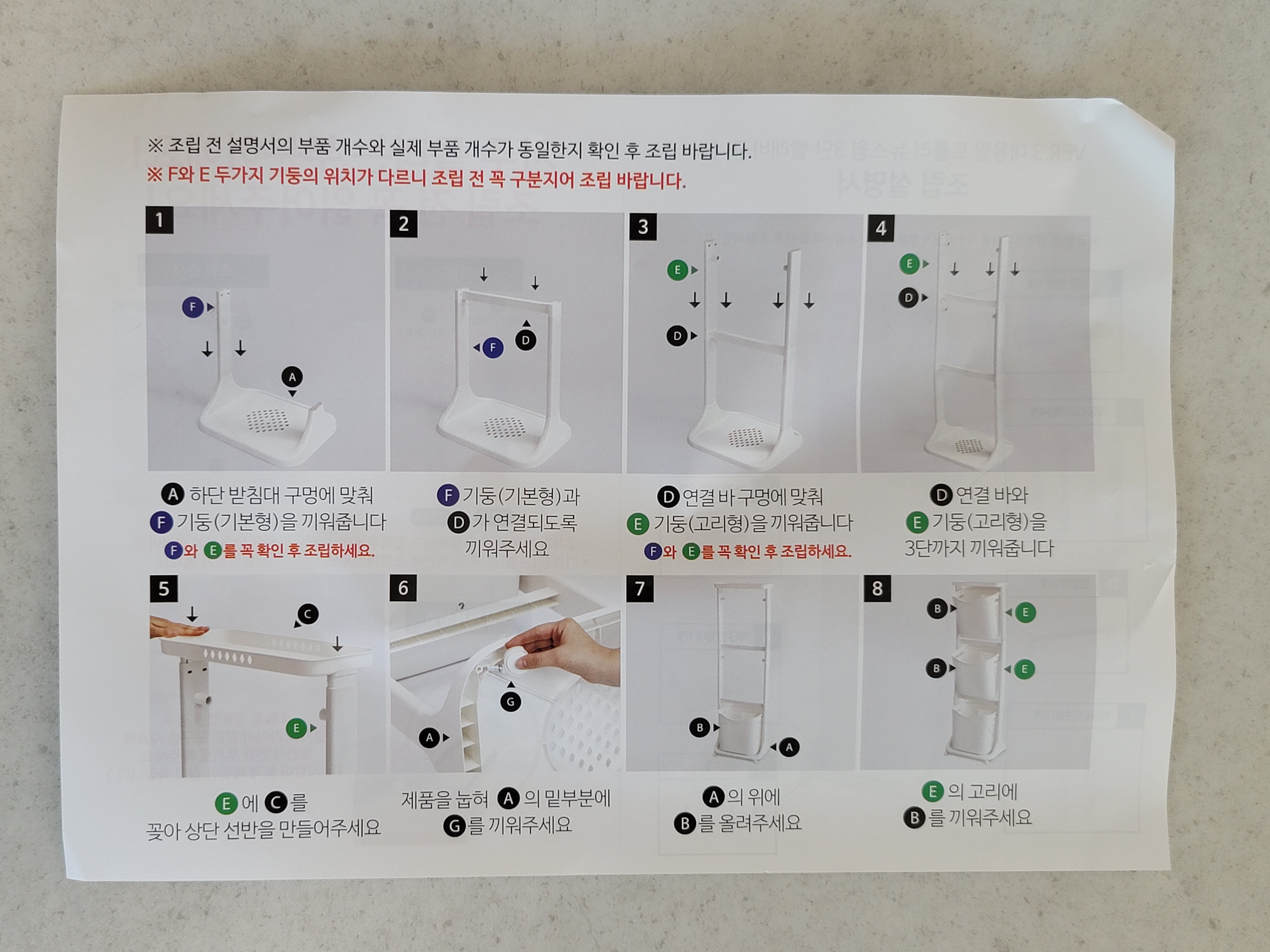 다시 한번 연결바를 끼워주고 기둥E(고리형)을 끼워주고 상단 선반을 마지막으로 끼워줍니다