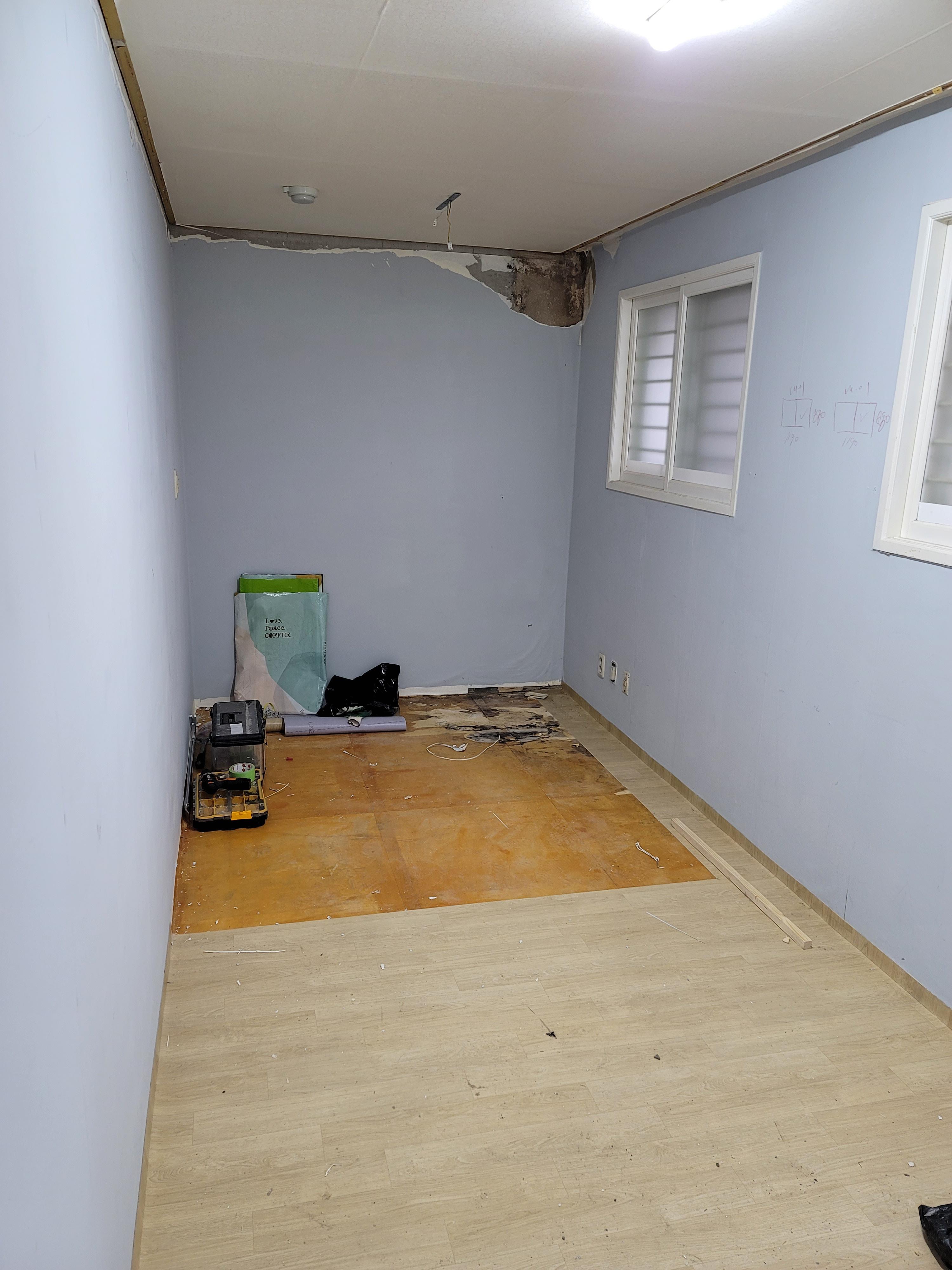 천장 몰딩과 걸레받이가 다 제거 된 상태입니다