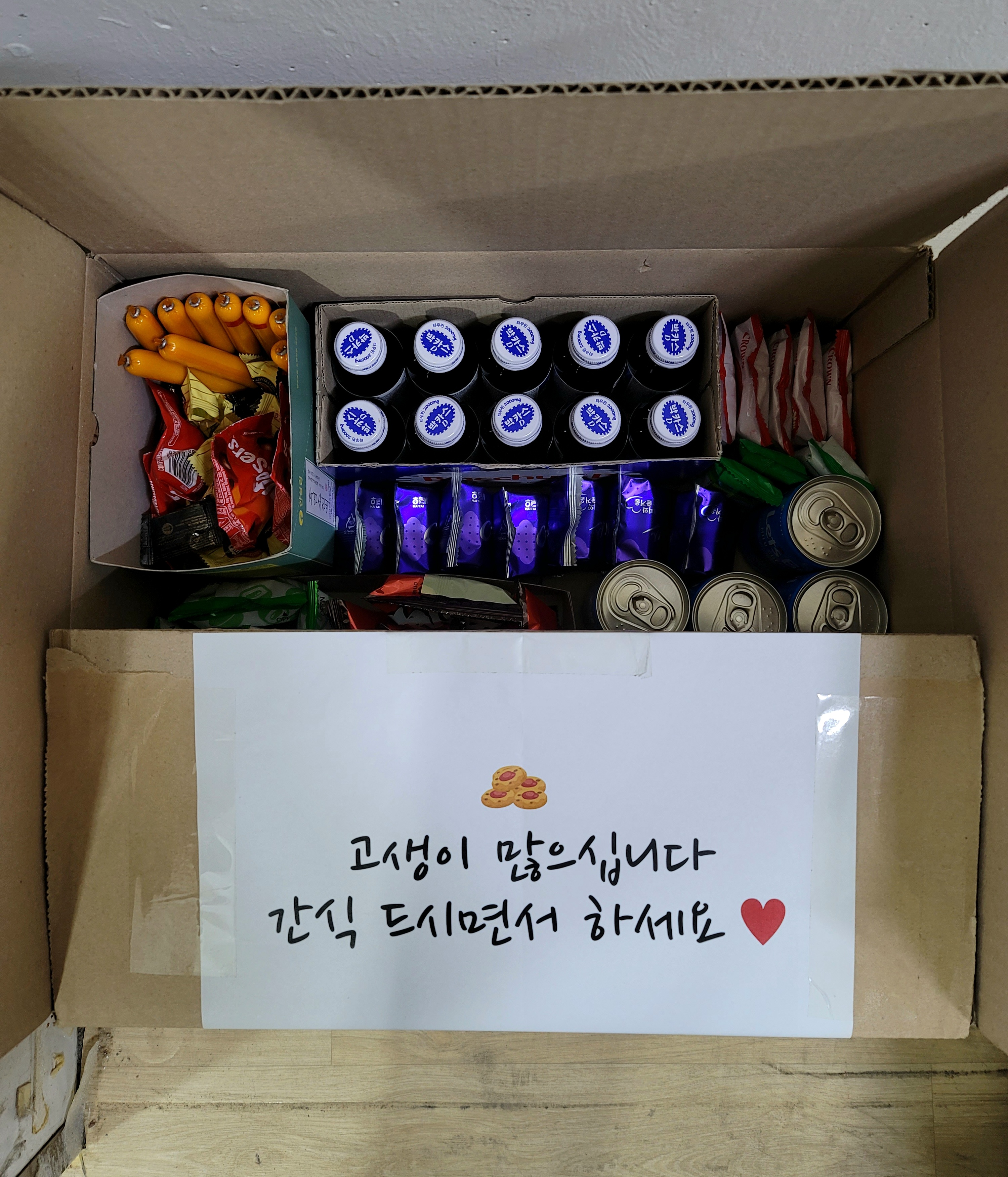 저희는 소소하게 작업하시면서 드시라고 간식을 준비해 보았습니다