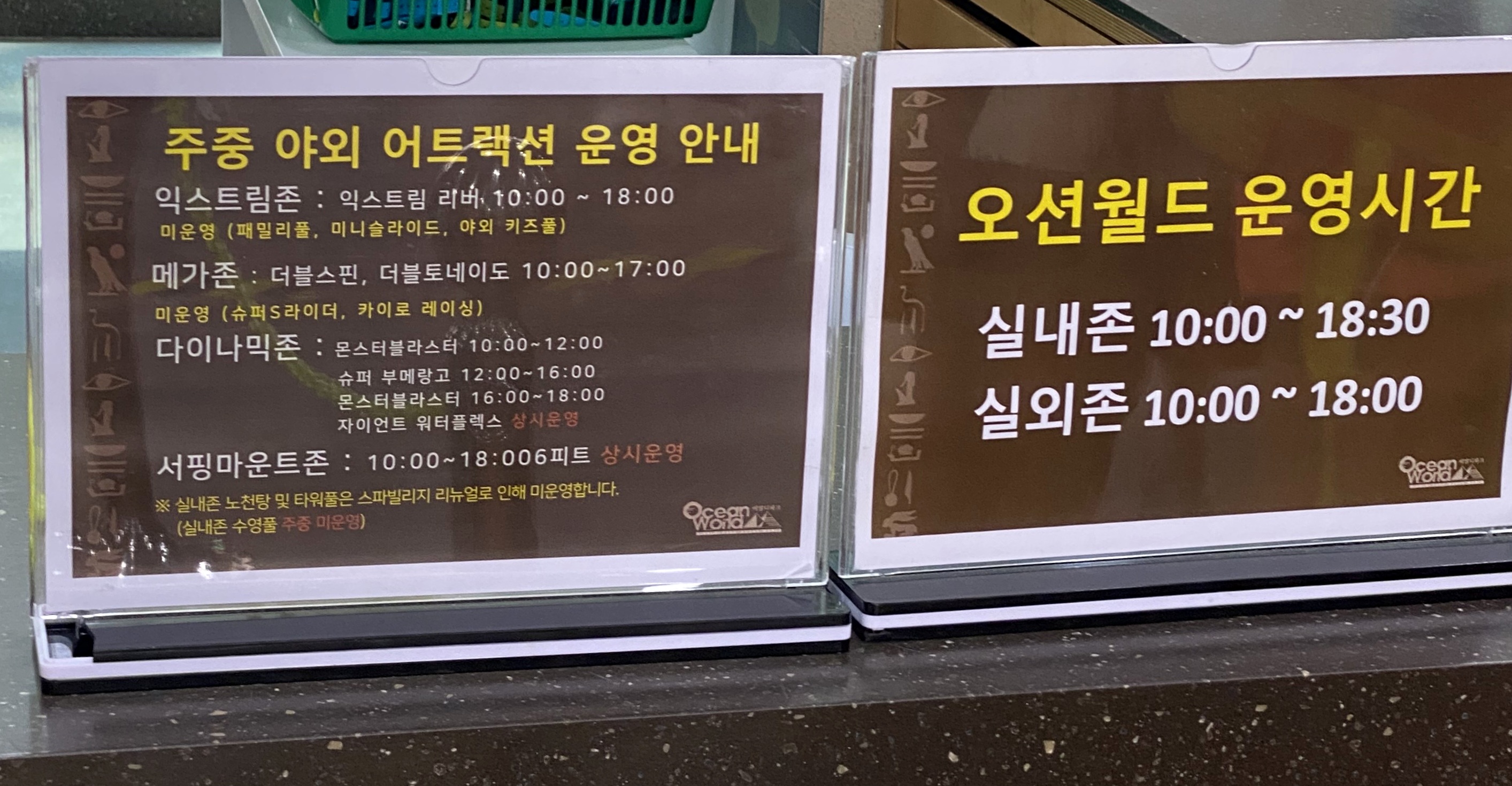 - 음식물 보관소 이용시간은 오션월드 운영시간과 동일합니다.