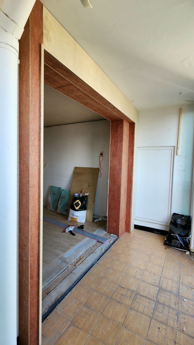 아우스바이튼 폴딩도어를 설치하기 위한 목공작업입니다