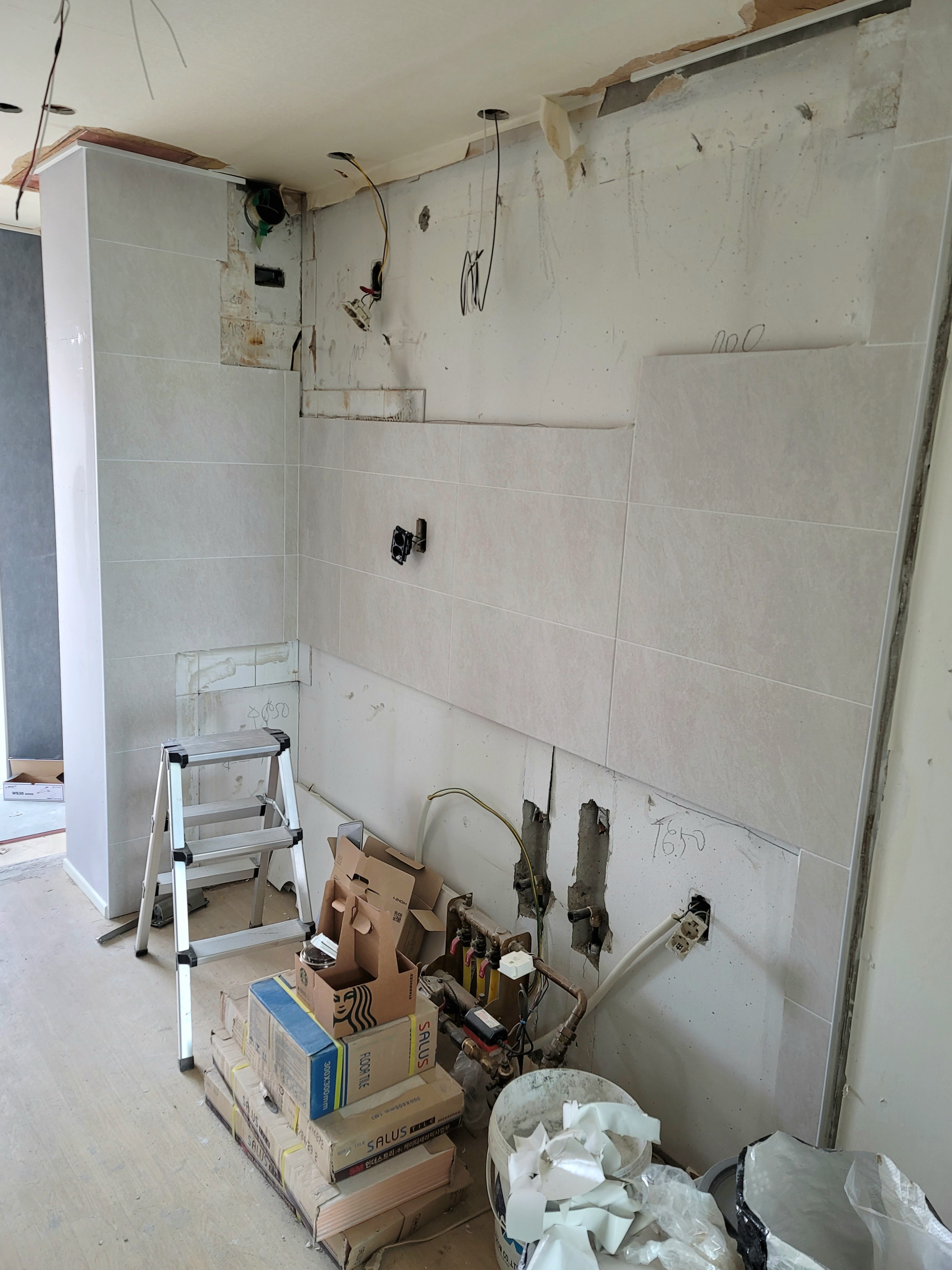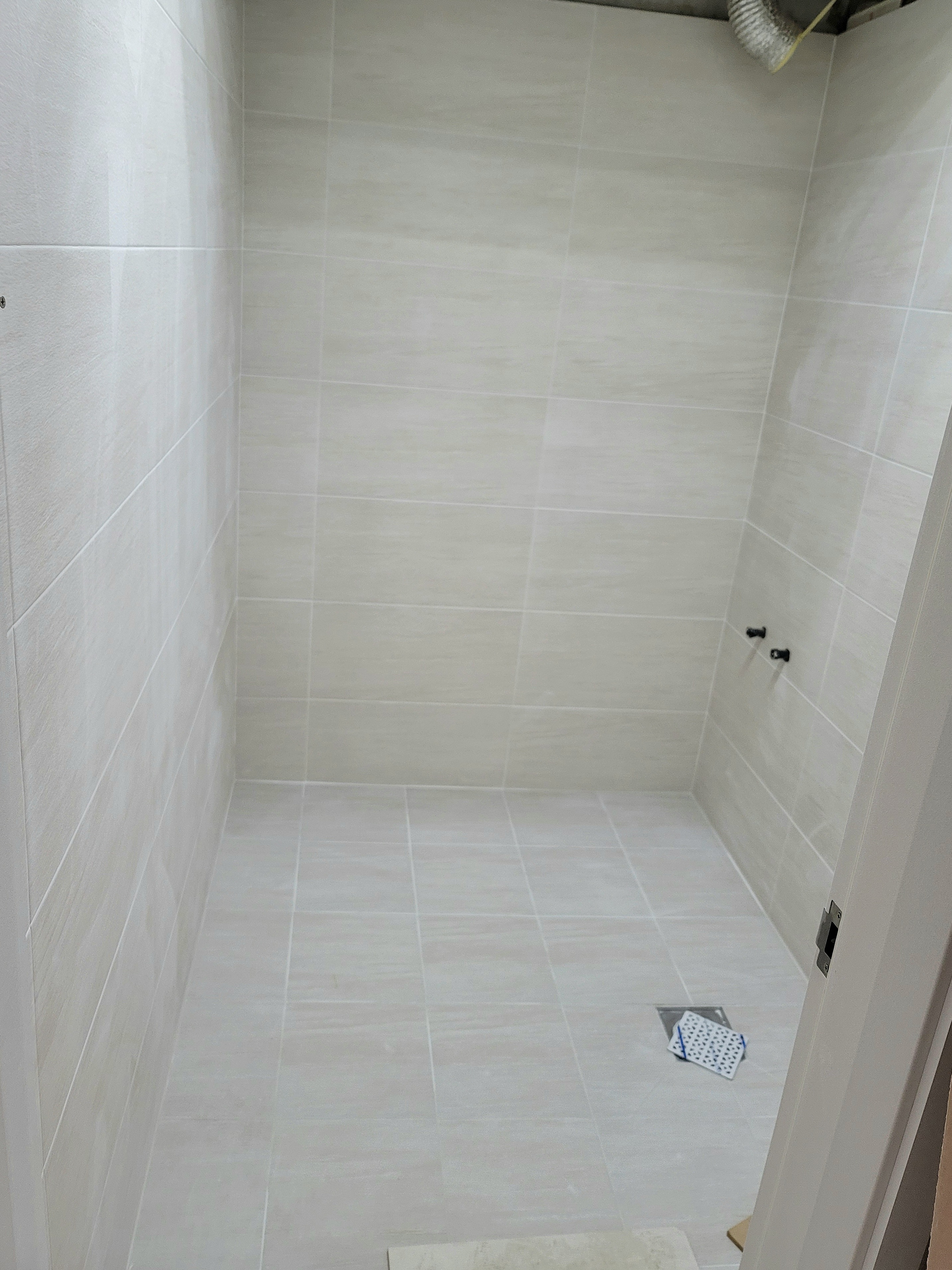 이렇게 저희가 고른 베이지그레이색 타일로 작업이 되었습니다~