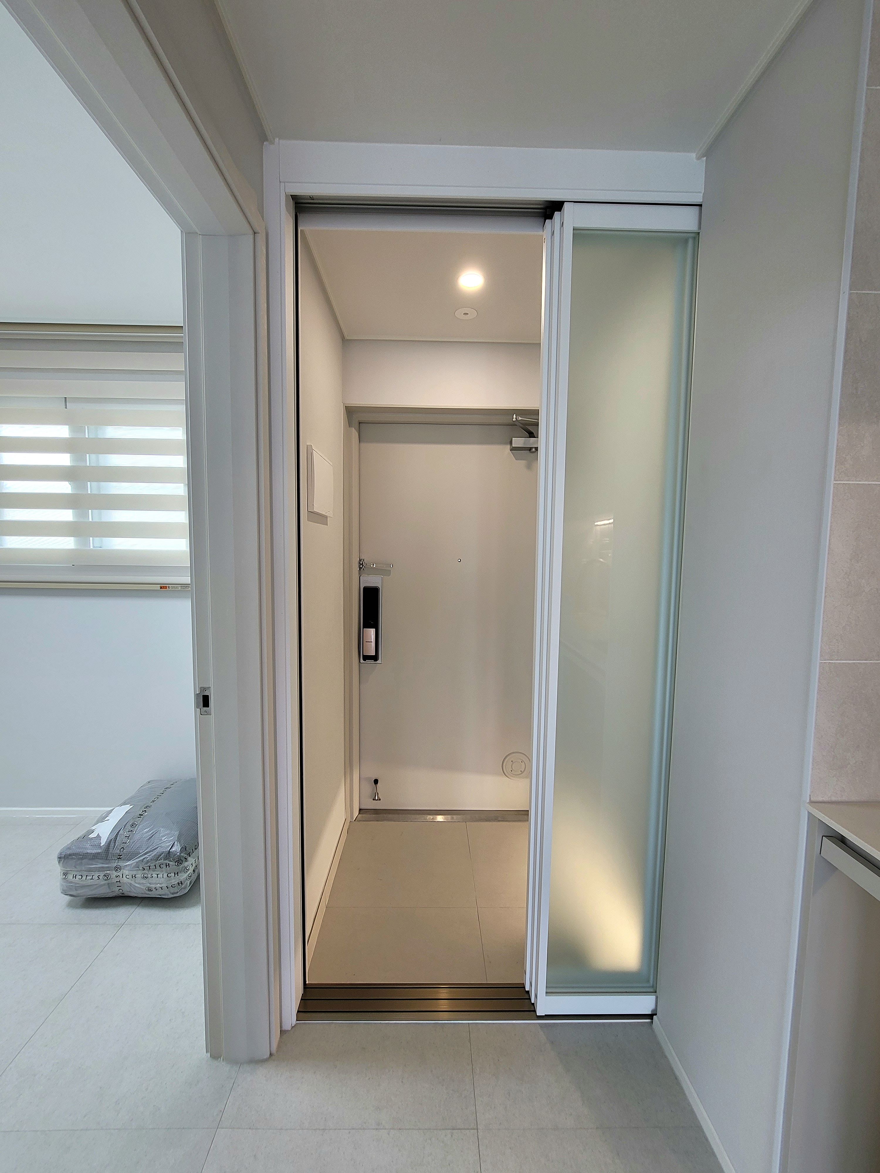 폴딩도어를 열면 벽뒤에 완전 숨길 수 있습니다