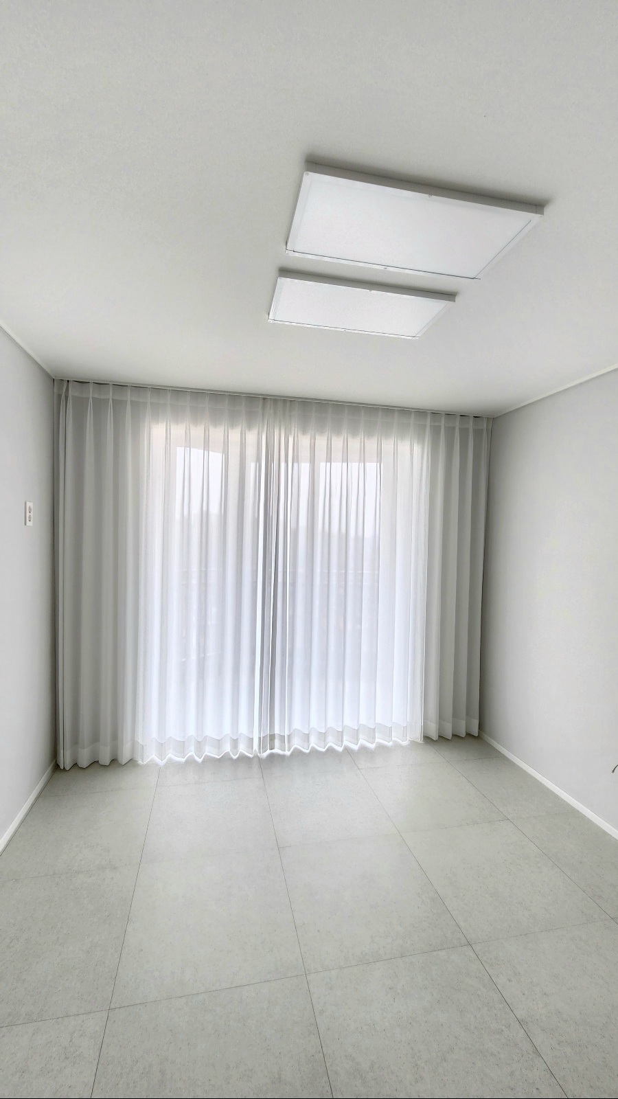 거실에는 하늘하늘한 쉬폰거튼을 활용하여