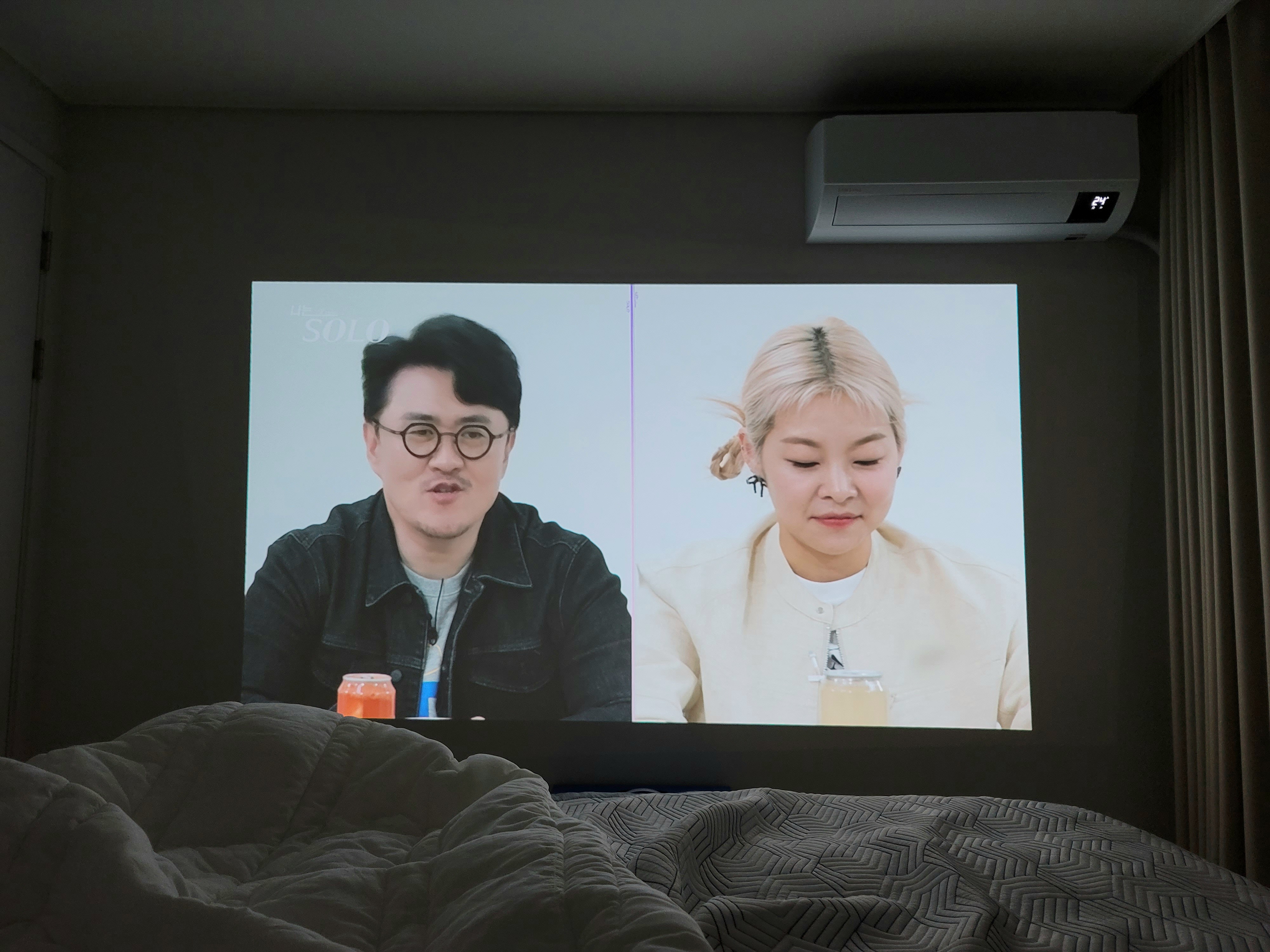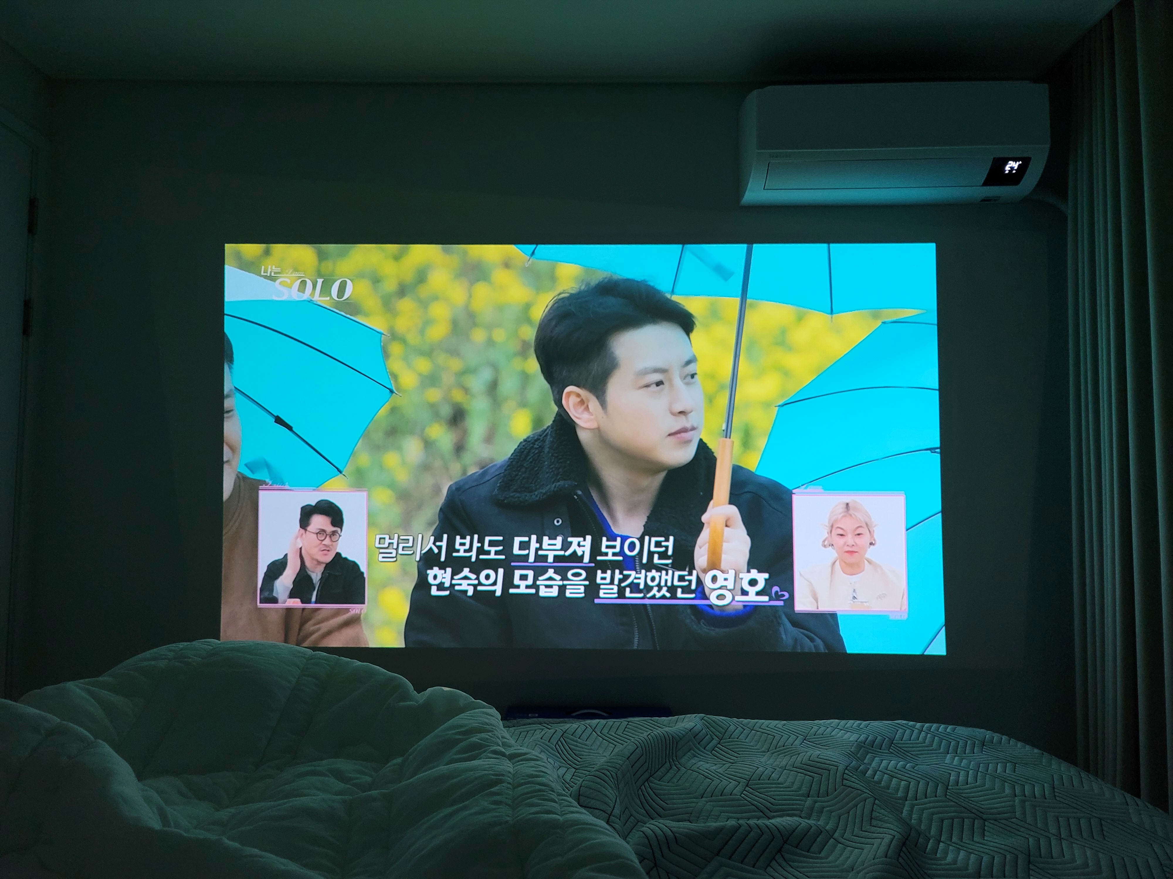 누워서 보기 위해 천장에도 쏴보았는데