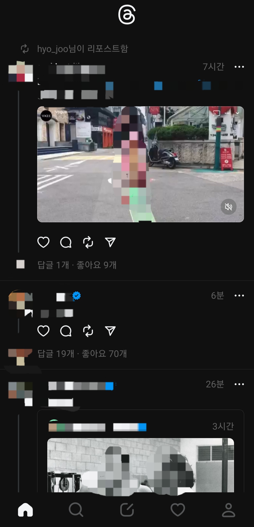 다른사람들이 올린 게시물들이 보이기 시작했습니다