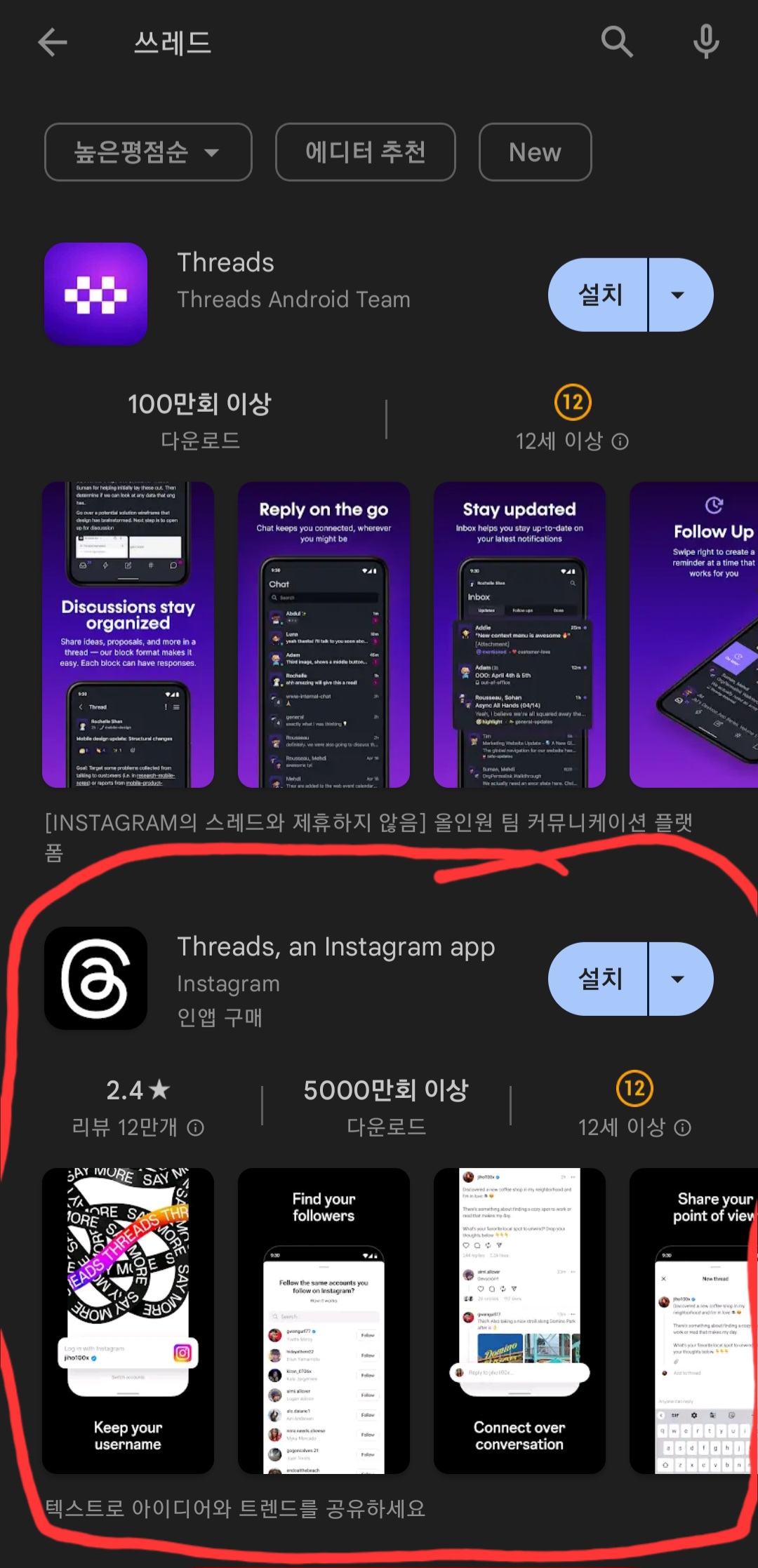 '스레드'로 검색도 역시 첫번째로 나오네요