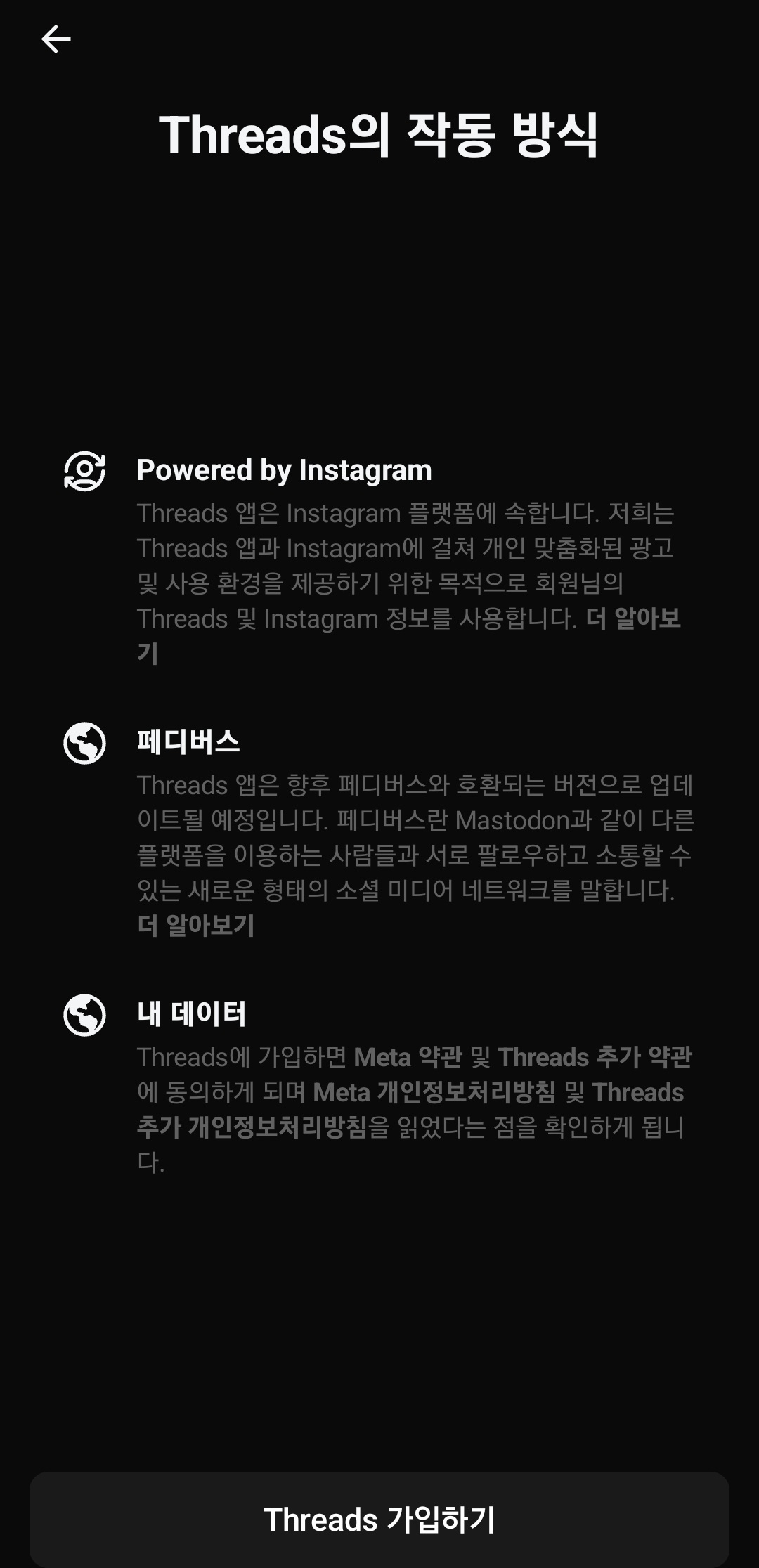 다음으로 Threads의 작동 방식 페이지가 나옵니다