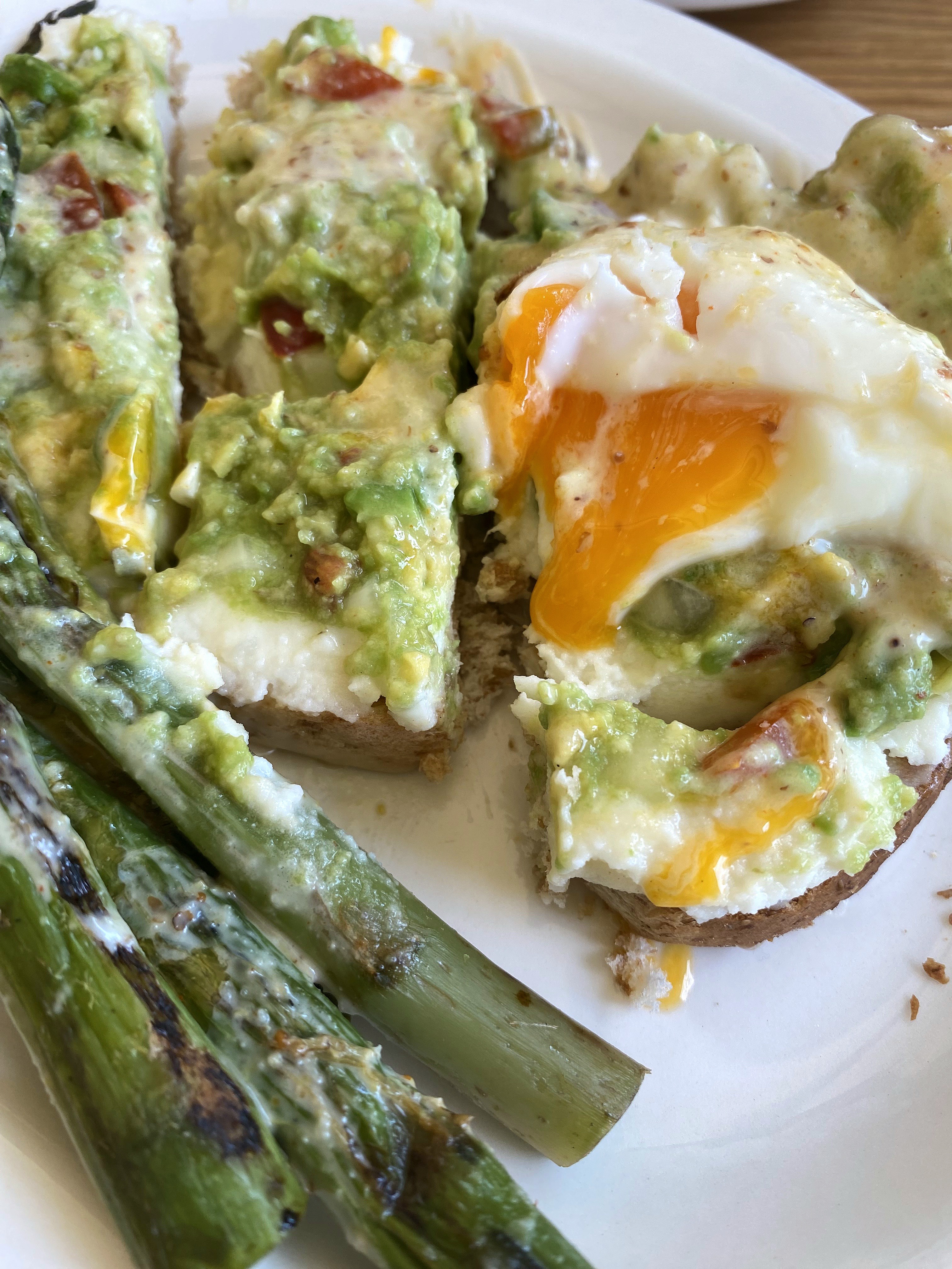 바삭한 바게트 빵에 과콰몰리와 포테토 샐러드가